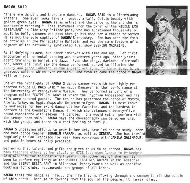 Click Here to read a Philadelphia Article written about Nagwa Said at the Middle East Restaurant.